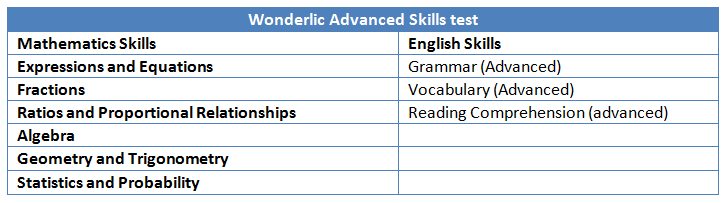 - The Wonderlic Advanced Skills Test covers 5th grade into sophomore year of high school, and it assesses a broader range of skill levels and test content than commonly-used college entry tests.
