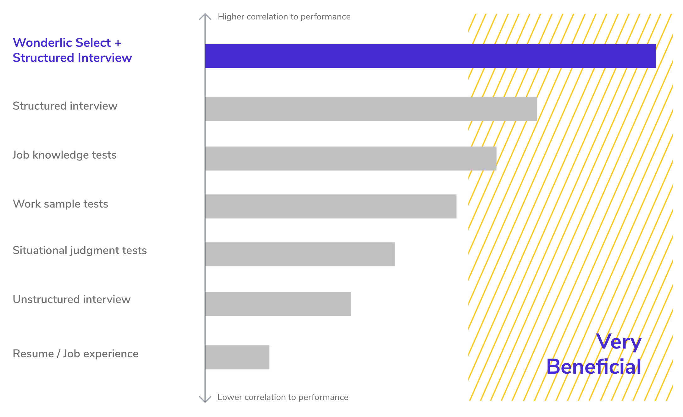 Just using a resume? See how Wonderlic compares to job experience and other common assessment methods. Unlike other providers who only focus on one or two constructs, Wonderlic Select assesses all three of the top predictors of job performance and includes job-specific interview guides.